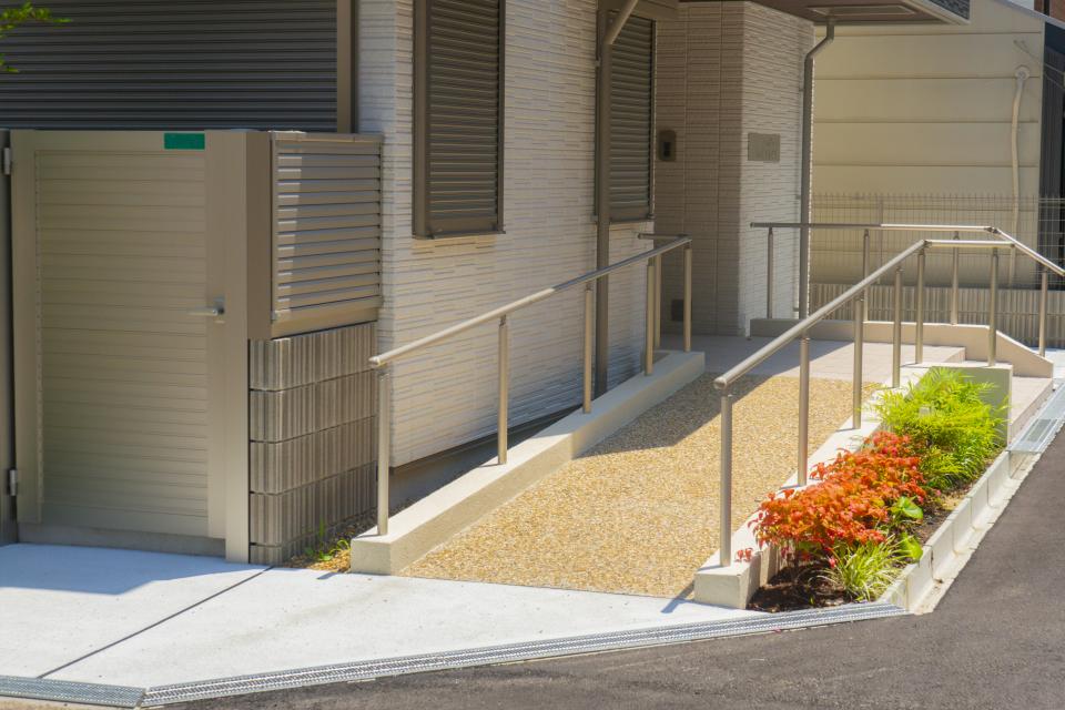 スロープは車イスやベビーカーを利用されている方に必要不可欠なものです。玄関前の面積に合わせて、昇り降りしやすくよりストレスの少ないスロープをご提案させていただきます。